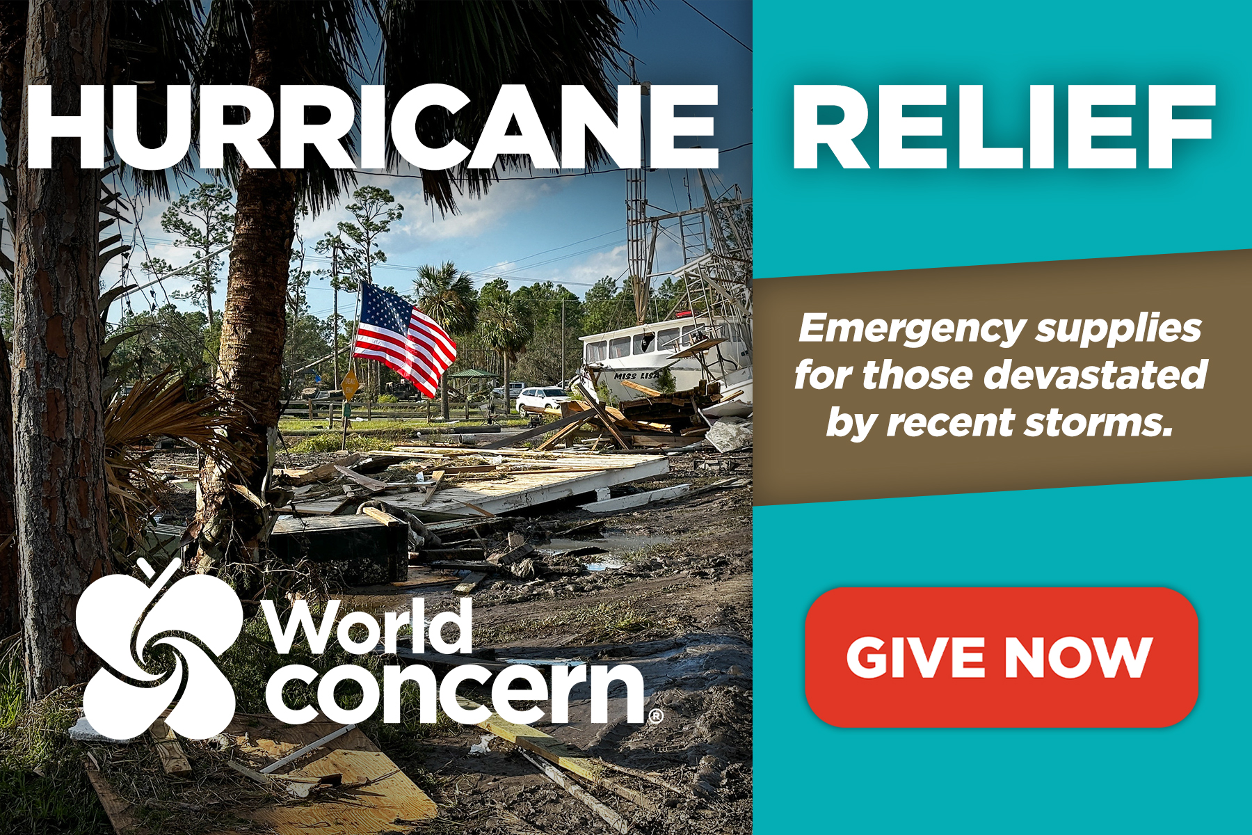 You can help provide emergency supplies to those who need it most. World Concern is responding with our church partners on the ground across the southeast to provide immediate relief. We need your help now to provide emergency supplies, clean water, and shelter to those affected by this devastating storm. Your urgent donation will bring emergency supplies, clean water, and immediate support to families in desperate need.