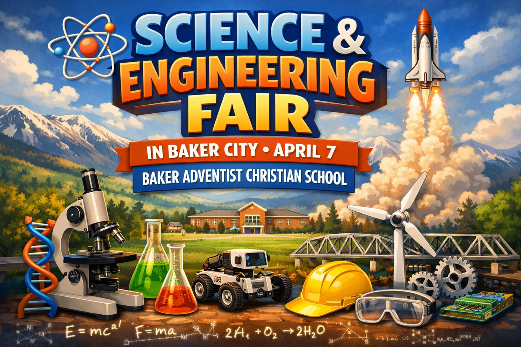 Students in grades K through 8 looking for a venue to display their science or technology projects are invited to attend the Science and Engineering Fair in Baker City on April 7, 10am-2pm hosted by Baker Adventist Christian School.
